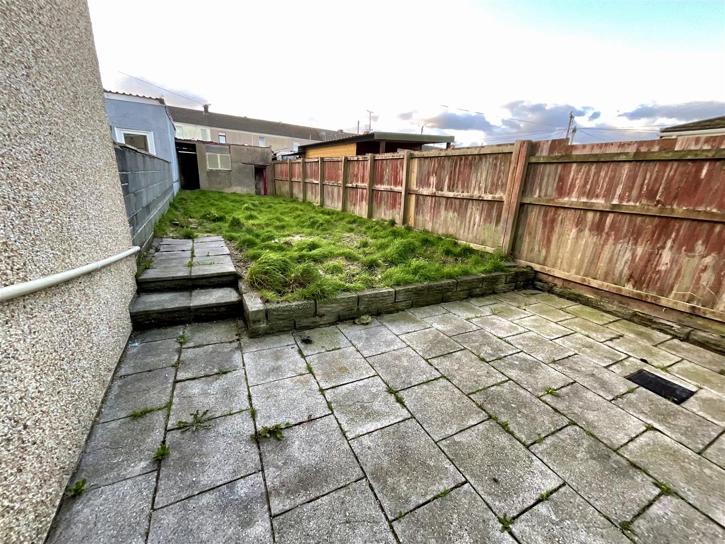 The rear enclosed garden is laid mainly to lawn with patio area. Storage Shed.